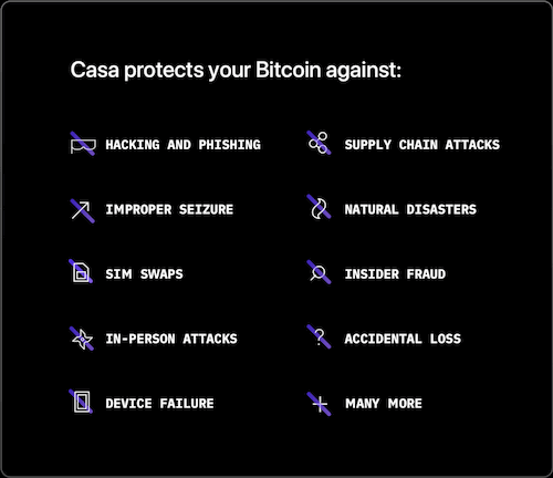 Casa has been dedicated to helping clients HODL bitcoin for the past three years. Our self-custody solution protects you from every form of theft and loss that we have seen occur throughout Bitcoin's history.