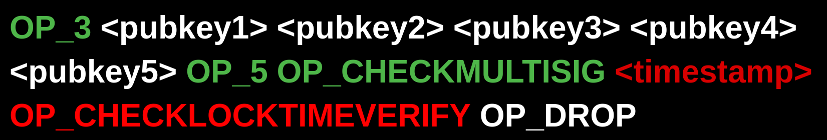 Casa Centurion takes our standard multisig wallet and time locks it using the Bitcoin protocol for 100 years. This commitment shows that your corn is not for your own consumption, but for the benefit of your heirs. From a technical perspective the Bitcoin redeem script is quite simple; it merely requires the additional data in red:
