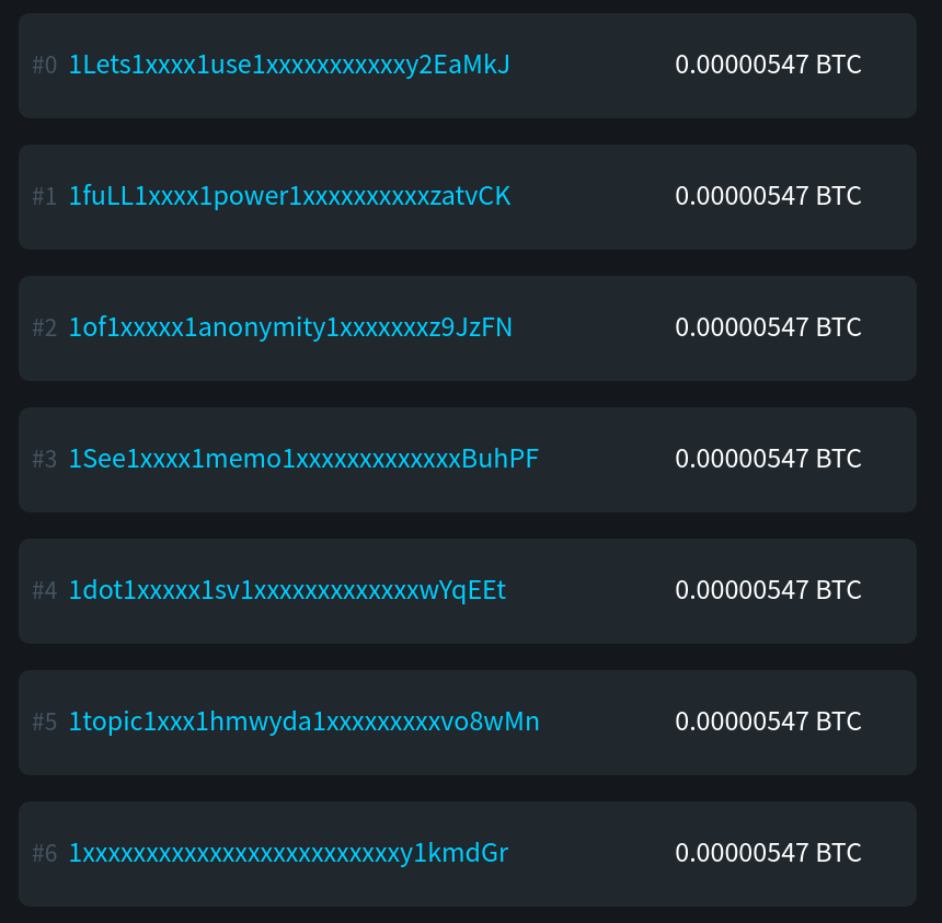 By analyzing blockchain data for patterns and threading together other public information, we can see that the vast majority of dust outputs are clearly tied to spam and advertising campaigns. Different dust storms have been generated for different end goals, but it’s pretty clear that the goals were not for the primary purpose of stripping away people’s privacy.