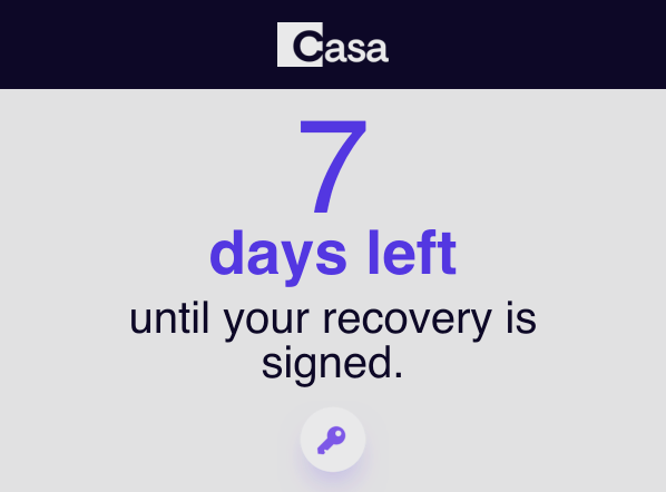 Each day during the time delay, we send users a reminder email with a countdown. In case the user’s Casa account was compromised, these emails will alert them to a false recovery attempt. If the user’s email was also compromised, it’s highly unlikely that they will not notice that for 7 full days. We believe this is plenty of time for a user to notice and cancel a fraudulent recovery.