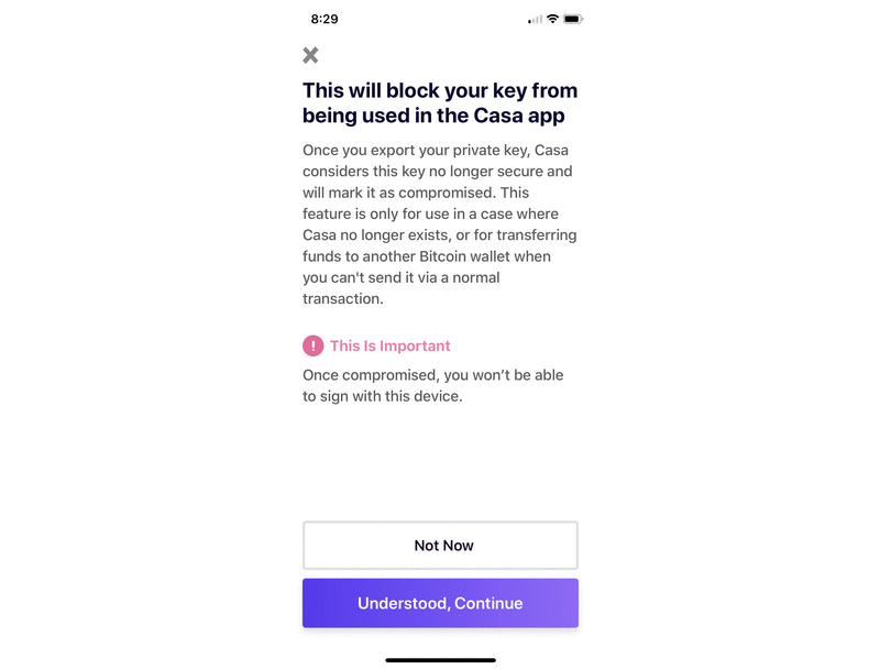 We built the ability to export your mobile key seed phrase as a resiliency feature for a worst case scenario: the very unlikely case where Casa has a catastrophic failure and disappears completely and instantly.