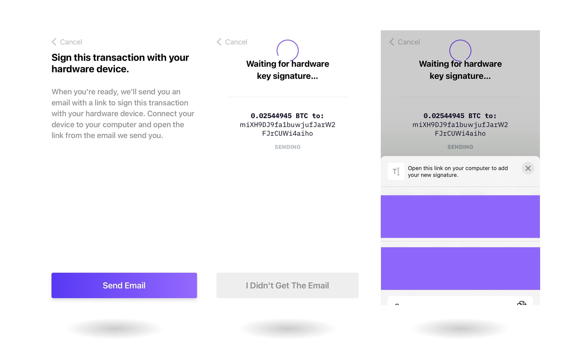 - We’ve removed the email dependency from hardware wallet signing - so you can safely sign multi-signature transactions without depending on email