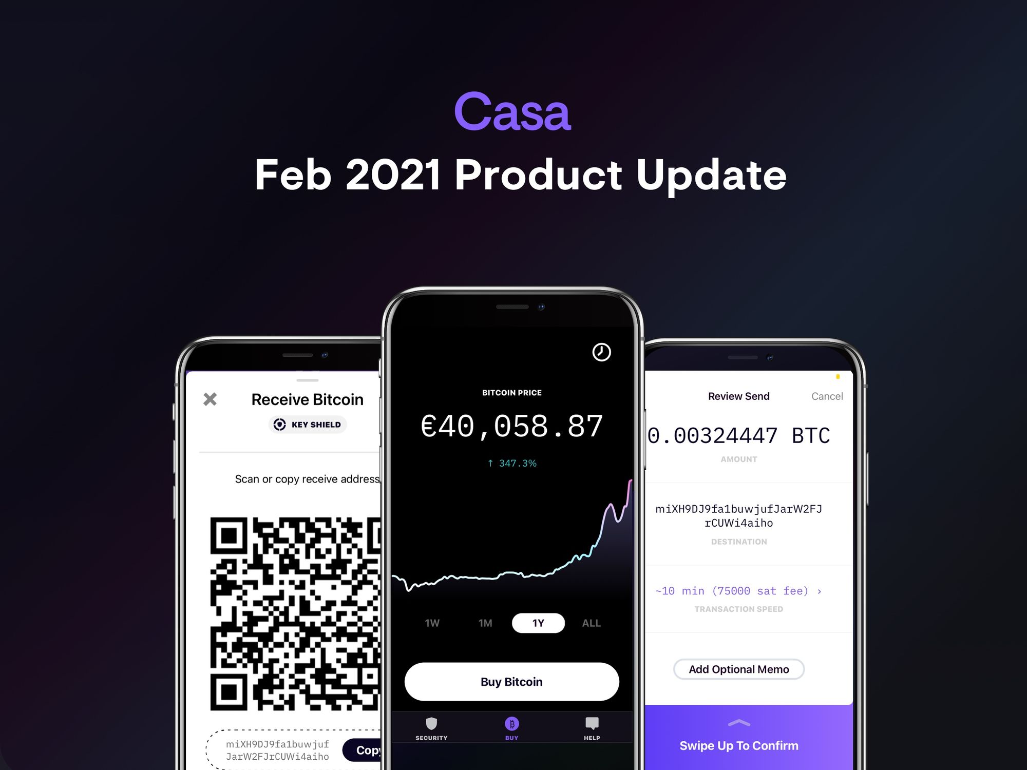 - Secure by default - When you buy bitcoin with Casa, it goes straight to your multisig. That makes risky exchanges one less thing to worry about.