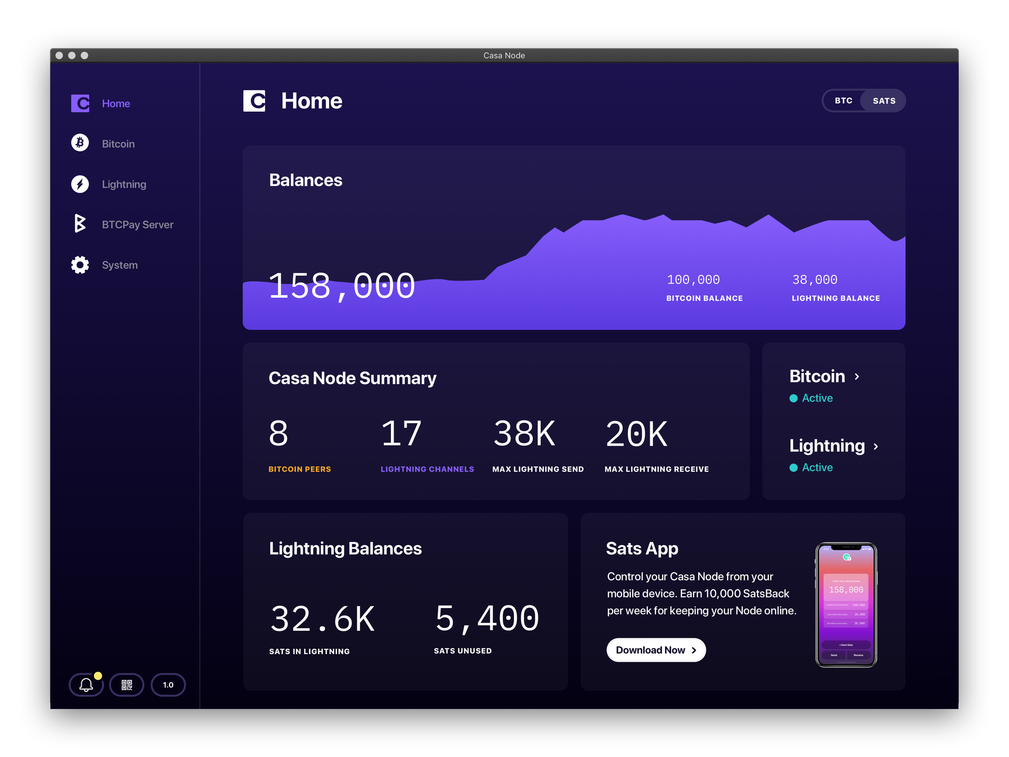Casa is the only company that provides an additional monetary incentive for running a healthy node. When Casa Node users connect their node to Sats App, they’re able to earn bitcoin! Users of Sats App with Node Heartbeats can get 10,000 SatsBack per week for getting 5 heartbeats sent. This serves as a direct incentive to maintain a high node uptime and strengthen the network.